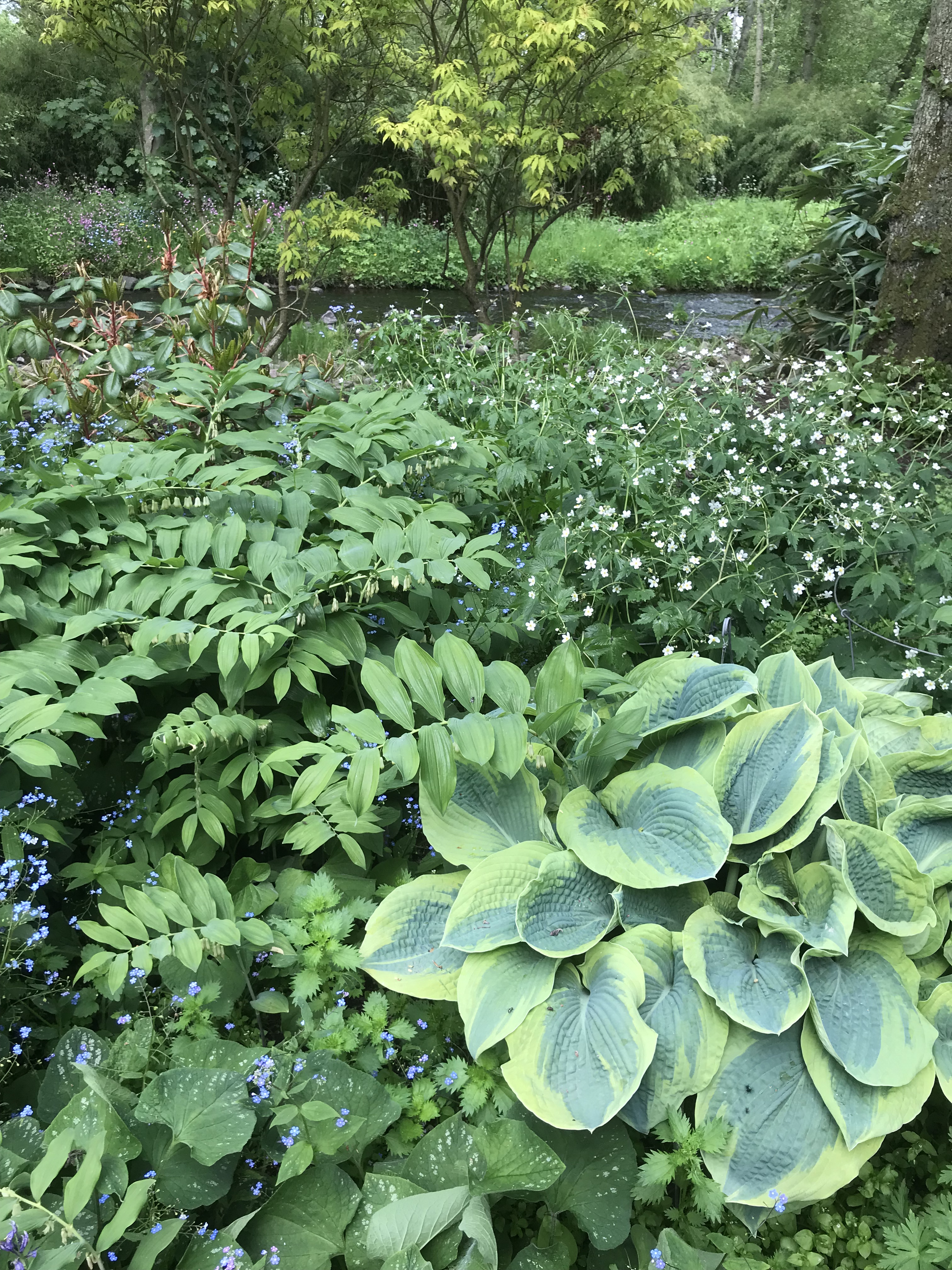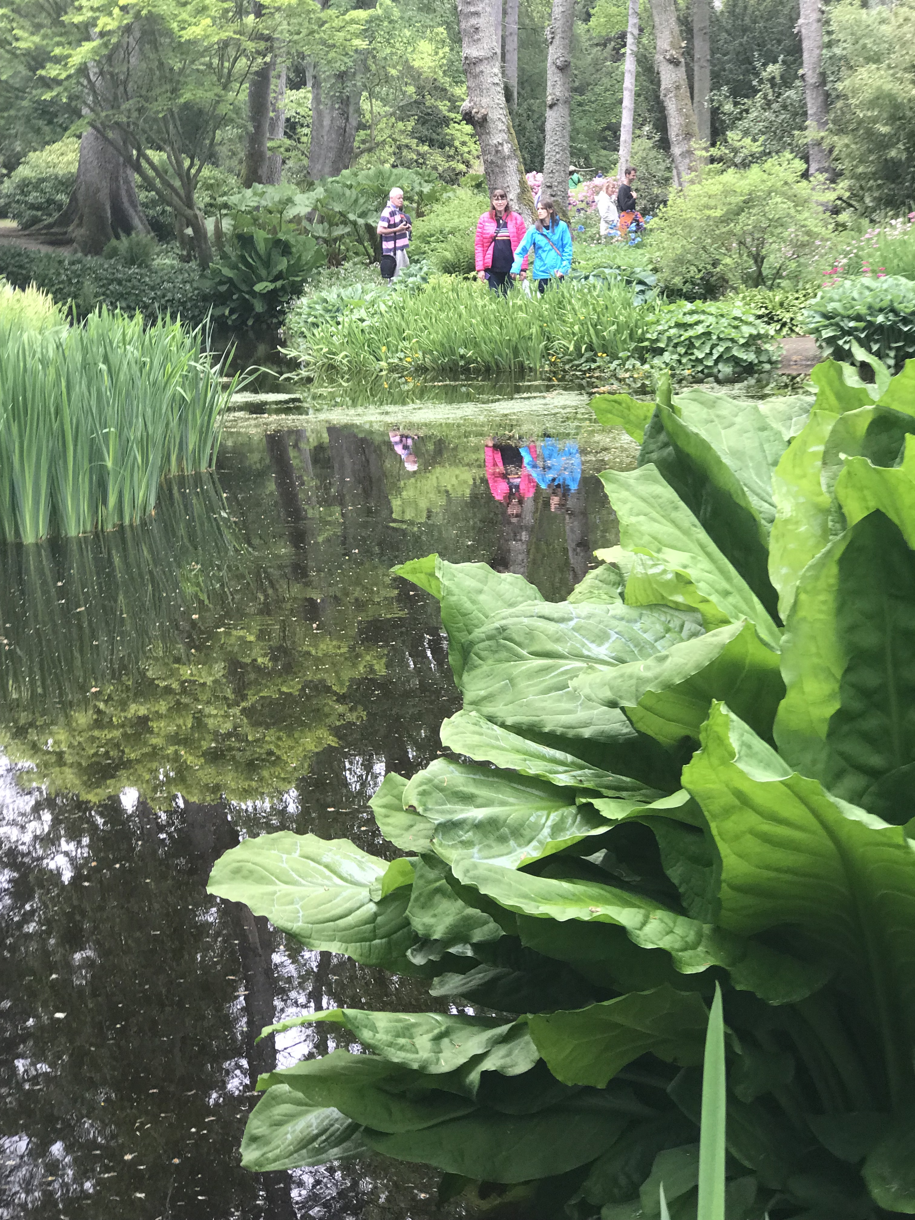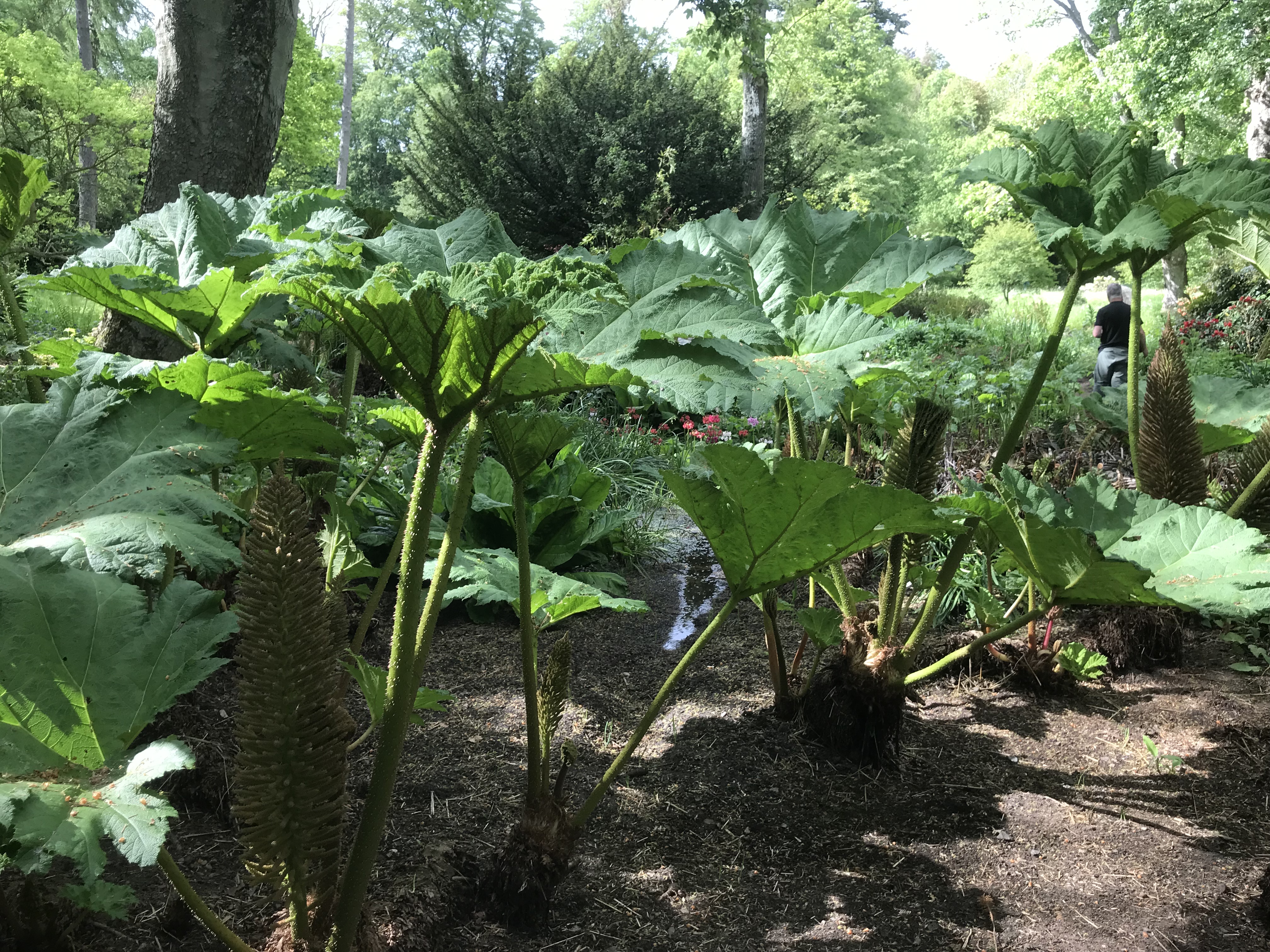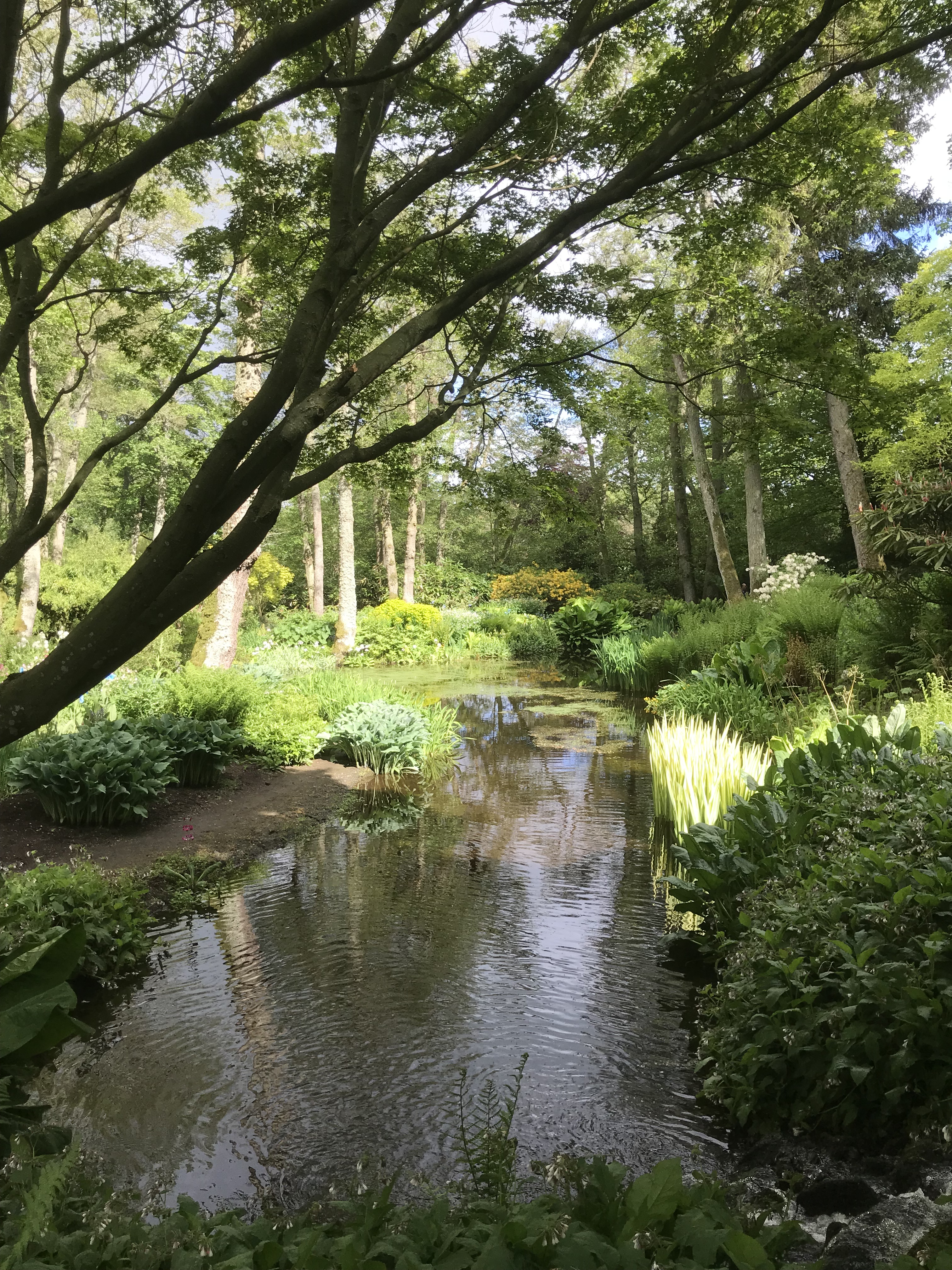 The Pond Garden is truly beautiful and well worth a visit. It is beside the River Till a tributary of the Tweed. The river runs through the whole garden. It has a fantastic planting scheme for this shaded area. It has Trillums, Mecanopsis, Hostas, Giant Lillies , A large patch of Gumnera and to many plants to list. On the way to the garden is an avenue of Bamboo 2 really large collection arches of Rhodedndrons and a bridge covered with Honeysuckle.